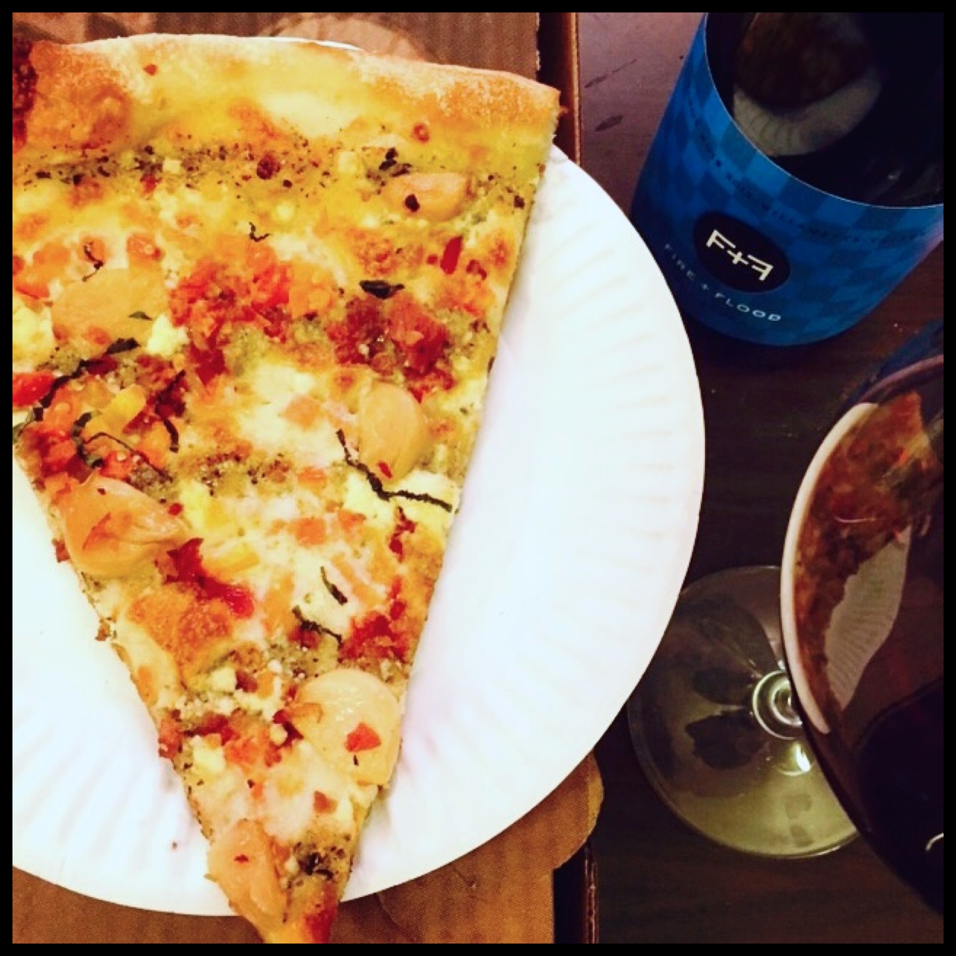 Gosset – “Excellence,” Brut, Champagne, NV, the entry-level offering of the house, is the most complexity needed when brunching. There are hints of limestone and toasty brioche in the glass, and while there is a muskiness in the wine that mirrors the earthy elements in the pizza, the aromas do not inspire much reflection. It’s thoroughly enjoyable without the pressure of having to talk tablemates out of adding a splash of orange juice.
