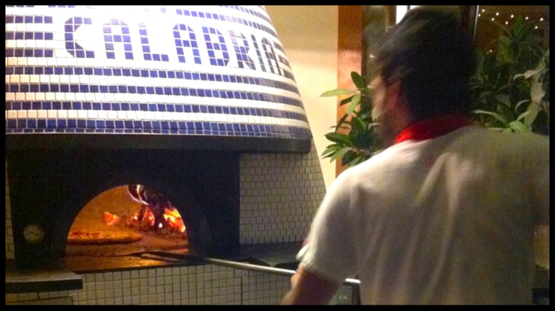 Calabria does what it can to keep true to the Neapolitan style of pizza-making right down to the oven, constructed by third generation oven maker Stefano Ferrara, of Naples, Italy. They have, however, mostly abandoned the fight for the classic fork-and-knife method of pizza noming, automatically slicing each pie on its way out. From the belly of the 700+ degree oven comes thin crust pizza, “wet” with a oozy center. With slicing, some vigilance is required bite to bite to maintain proper topping-support posture, a problem that could be eradicated if only we had evolved as a tool-making species.